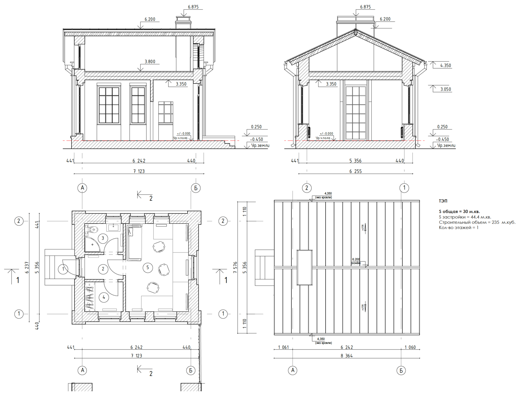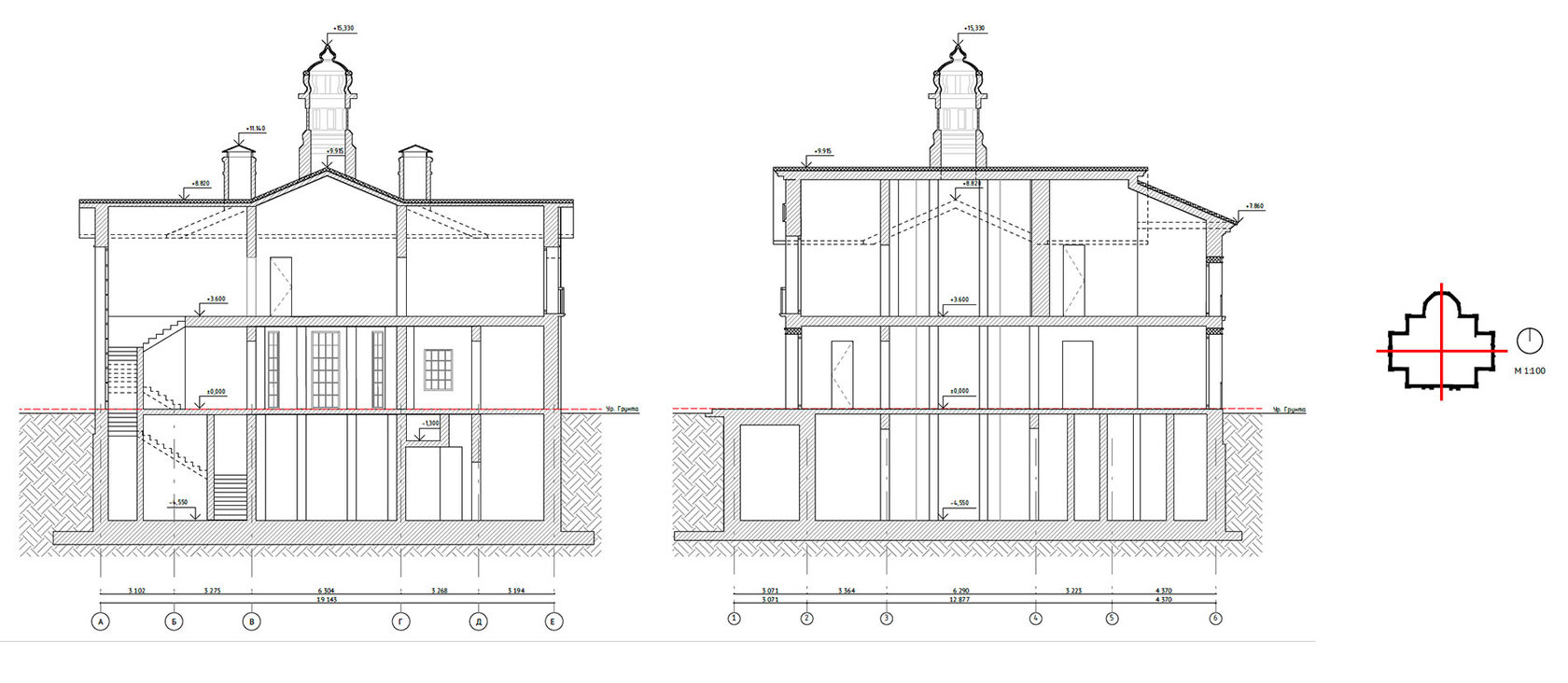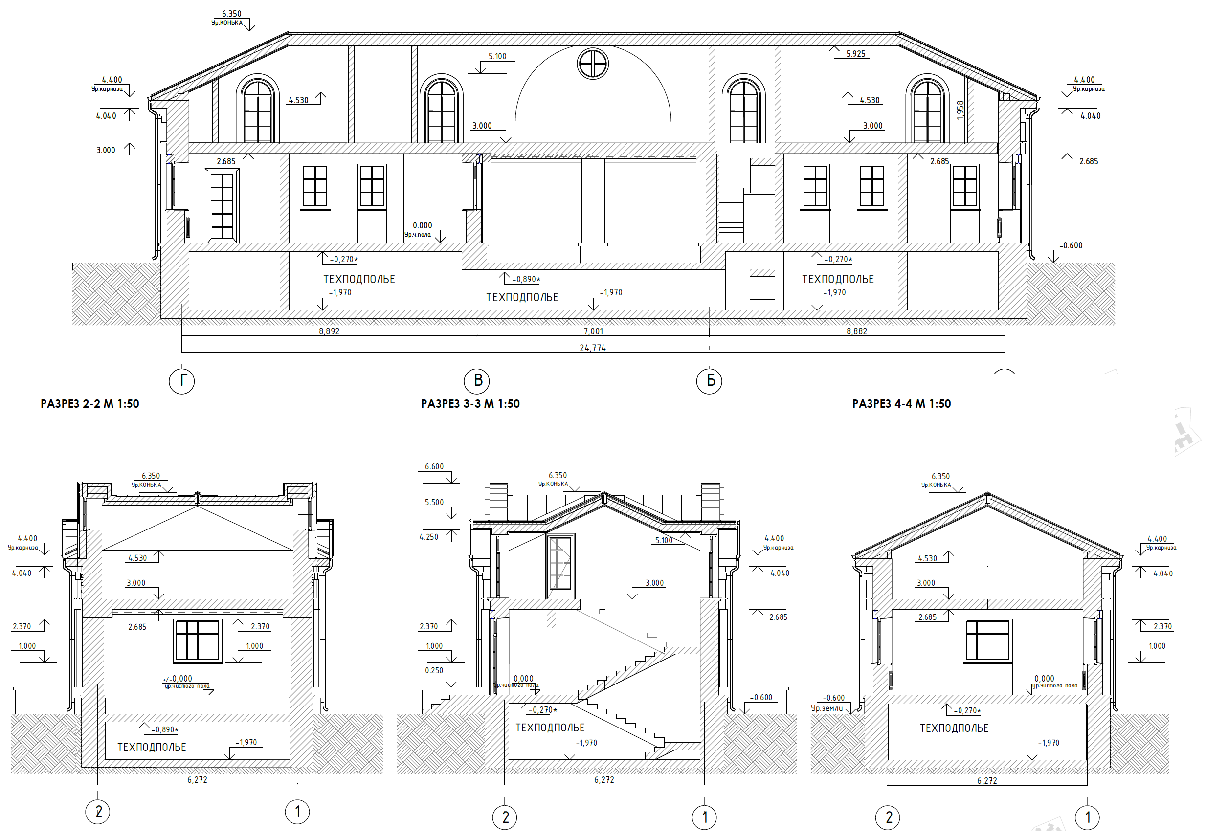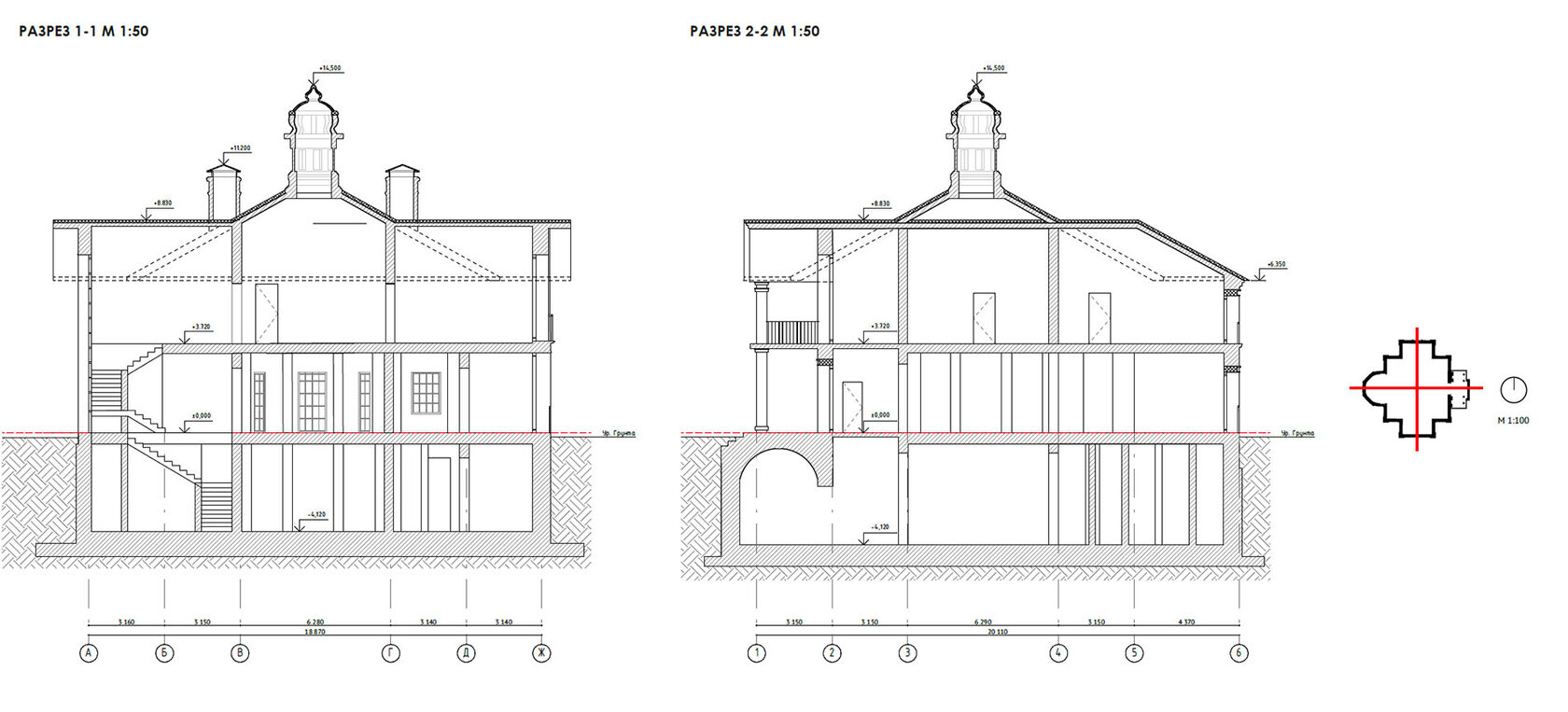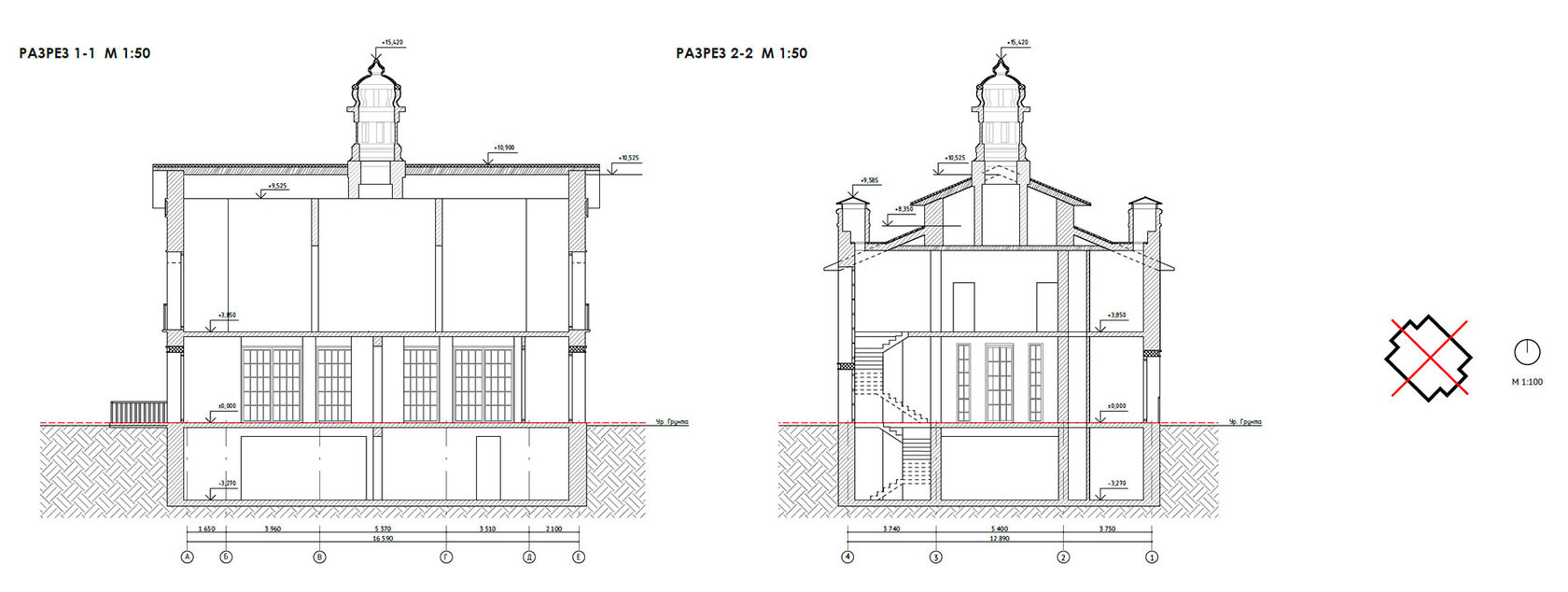 Вилла №4.3 Разрез 1-1, Разрез 2-2 М 1:50