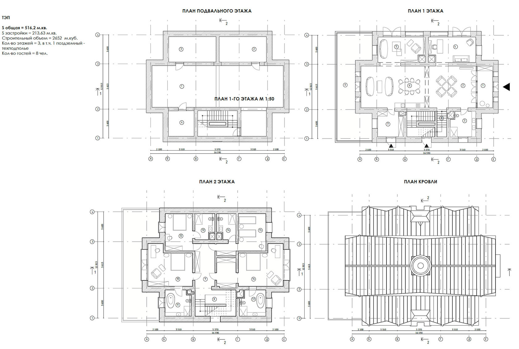 Вилла №3.3 План подвального этажа М 1:50; План первого этажа М 1:50