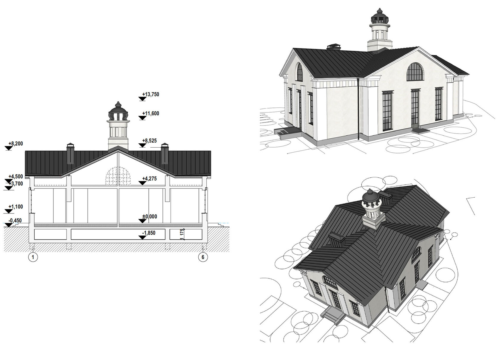 Корпус №1.1 Разрез, Аксонометрический вид