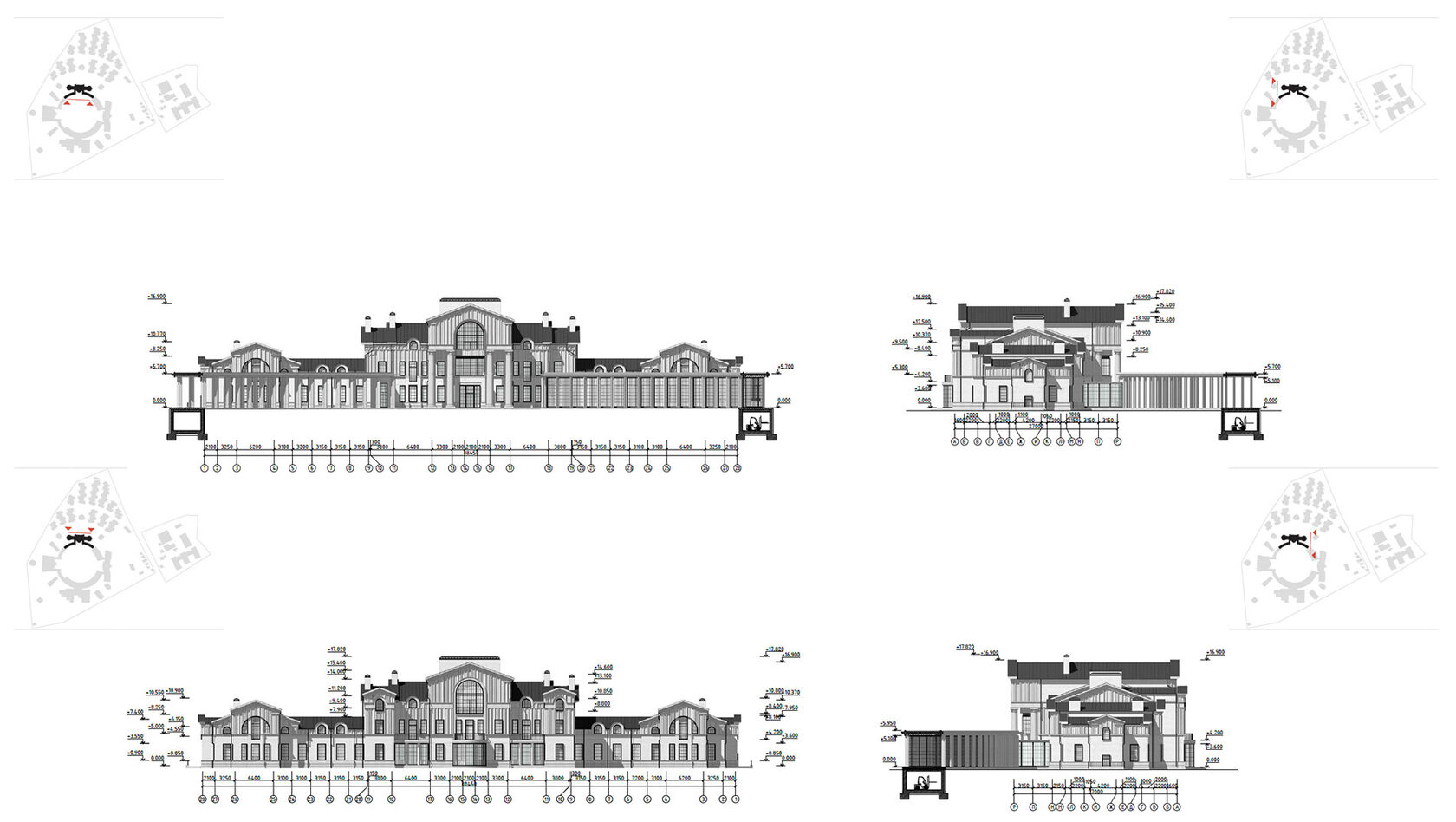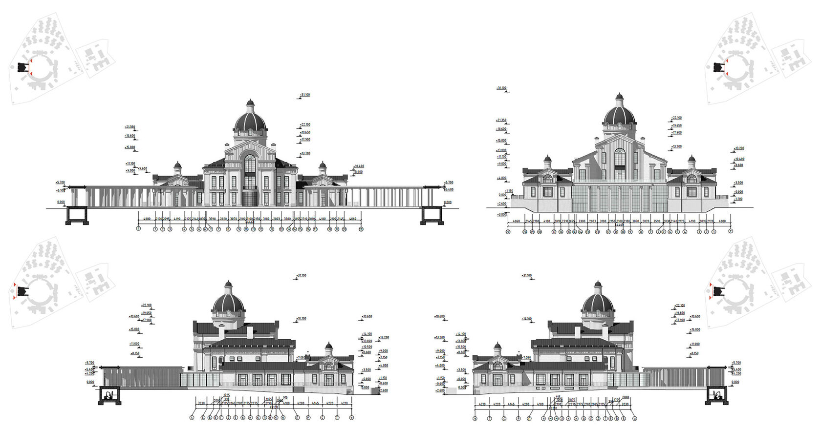 Building No.2. Facade in Axes 1-27, Facade in Axes SH-B2 M 1:200
