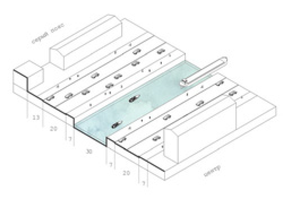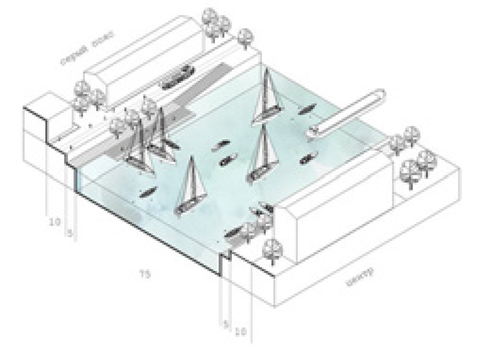 Undoubtedly, the dominant site in the area under consideration is the Yekaterinhof Park. Today, this existing park needs to be reconstructed. It is proposed to create a memorial-historical zone near the Yekaterinhofka River, dedicated to the history of the Northern War. In the active zone of the park will be located leisure children's zones, as well as a new stable. The architectural objects here will be various pergola structures transformed depending on their functional content. It is also necessary to restore the bandstand building to its status and purpose.