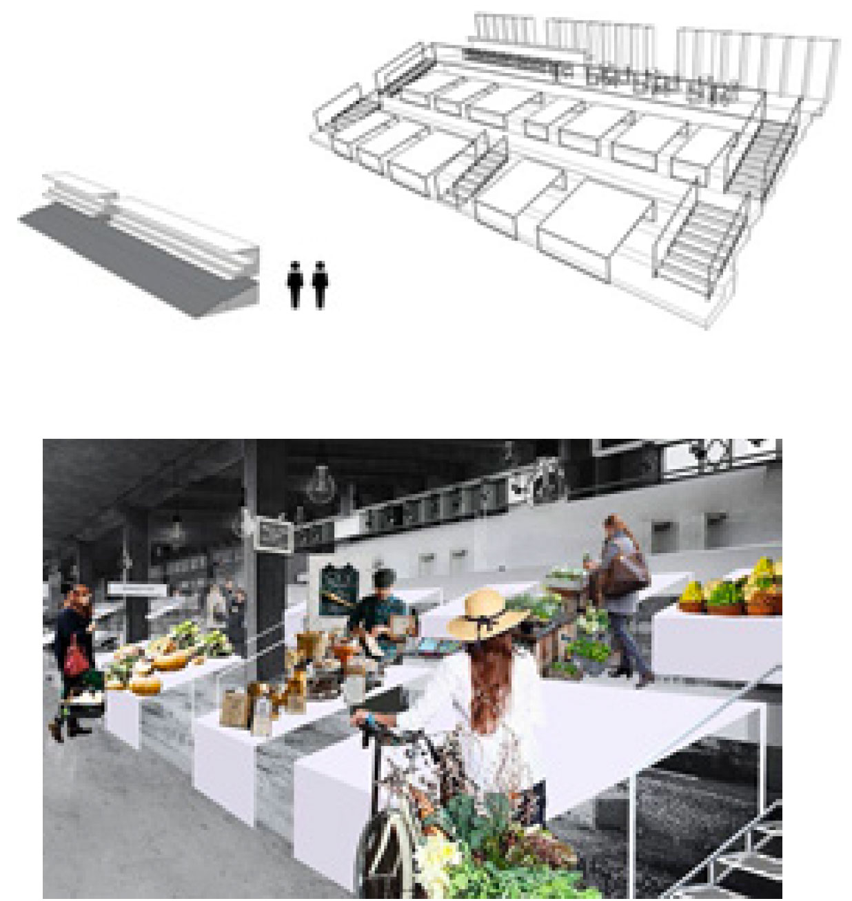 In the framework of the project, a calendar for the use of the territory was drawn up and several functions were proposed for each scenario: a public square with cafes and restaurants, a weekend market, and auditoriums for concerts and events held at the hippodrome. The upper level, with a separate entrance, houses two-level apartments with the preservation of historical structural elements. On the opposite facade from the hippodrome, a park is created for the residents.