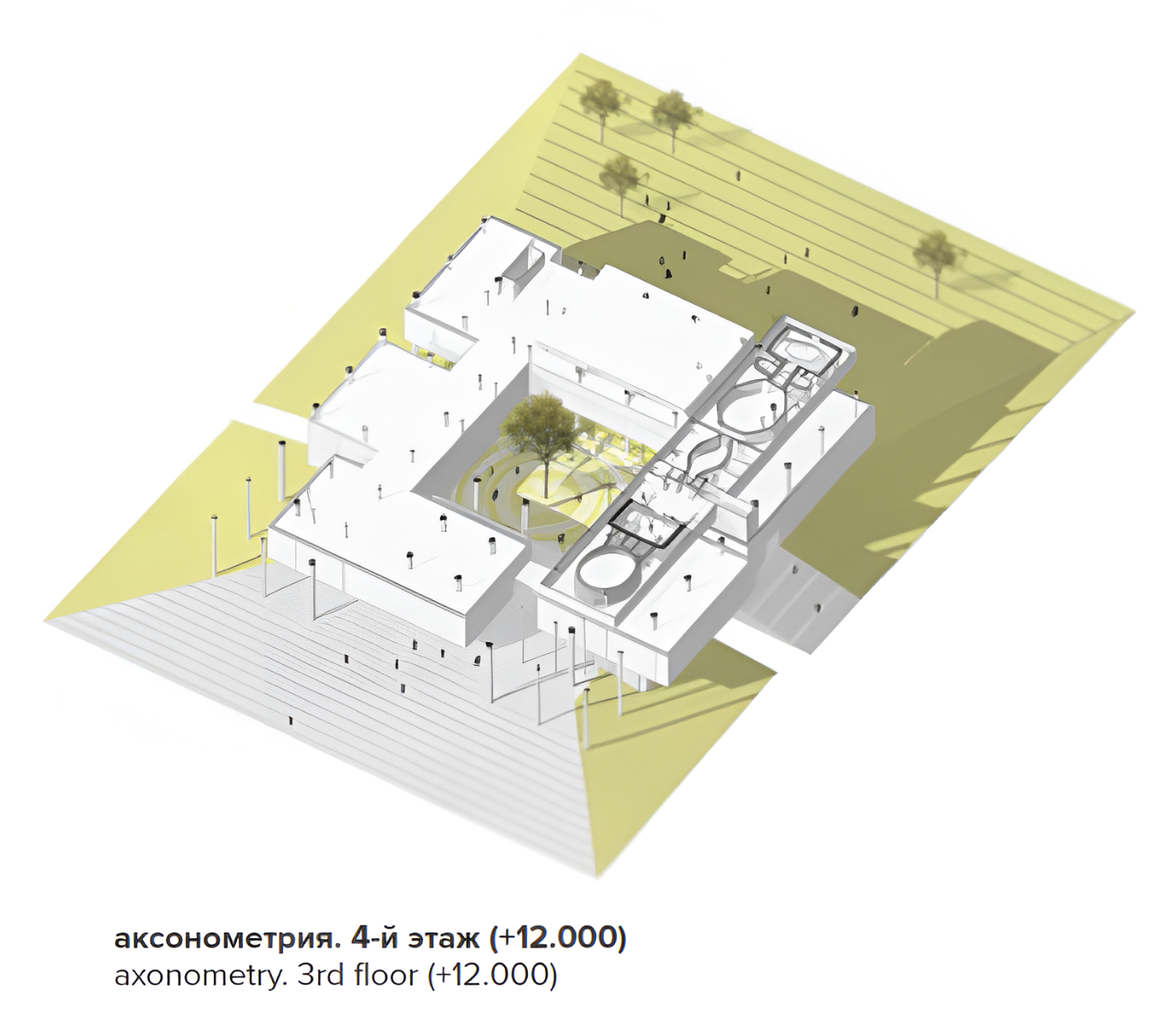 The project envisages reconstruction and modernization of the building complex in Almaty, which houses the Foundation of the First President. The multifaceted social and cultural programs, actively supported by the Foundation, have been divided into several blocks representing different areas of focus. Thus, there is a design center, a music academy, a film library, a science pavilion, a language and theater center. The Museum of The First President, a multipurpose hall, and the President’s apartment are also placed in separate blocks.