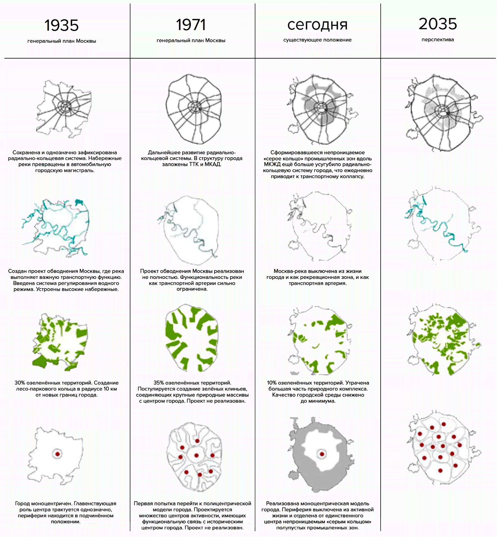 Проект посвящён столетию генплана Москвы. Проектирование велось в направлениях развития зелёного экологического каркаса, развития транспорта и пешеходных путей, развития водной инфраструктуры, а также отказа от моноцентричности в пользу полицентричного города, дающего человеку выбор, а не навязывающего ему жёсткие правила не вполне комфортной жизни.