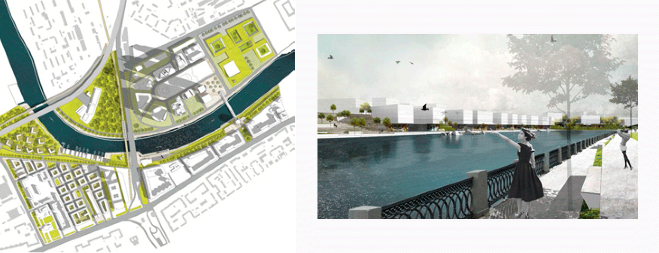 За счёт старого русла реки территория ЗИЛа является почти островом, что увеличивает протяжённость набережных. Это делает территорию исключительной для общения с водой. В проекте мы усиливаем этот эффект за счёт обводнения территории. Внутрь новой поверхности воды помещены острова с жилыми кварталами. Вода является ключевым градообразующим элементом, разграничивая пространства на частные и общественные.