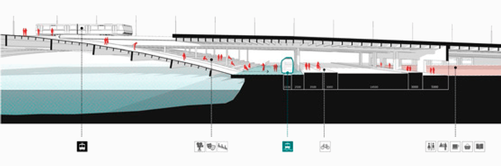 The second problem arising from the lack of connections is the low functional saturation of embankment territories. When waterfront territories, piers, spaces under bridges, instead of barriers to pedestrian flows become nodal points, at the intersection of public water and land transport - then they will also become centers of cultural and public activity, places of cultural events, exhibitions. Then public urban activity will begin to interact with the river.