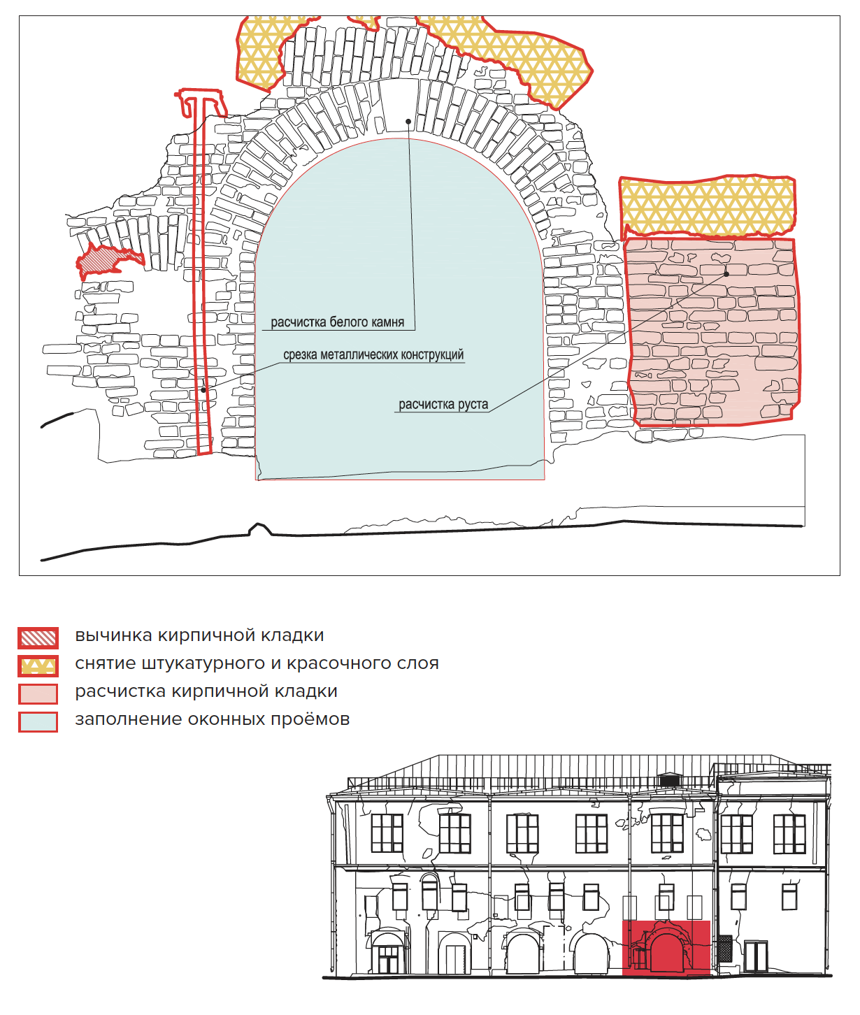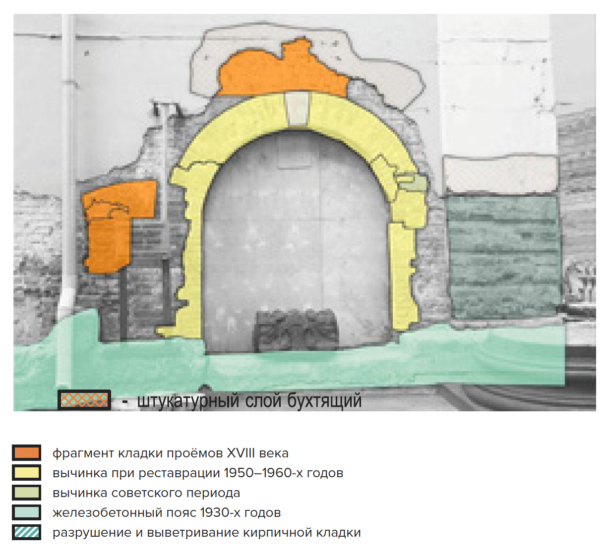 Во время ремонта кладки каждый старый выпадающий кирпич был вынут, очищен, изучен на предмет клейм, проверен на прочность, а потом, по возможности, возвращён на своё место. К красочным слоям была применена технология фрагментарной расчистки, сохранения и укрепления, что представляло собой невероятную по кропотливости ручную работу.