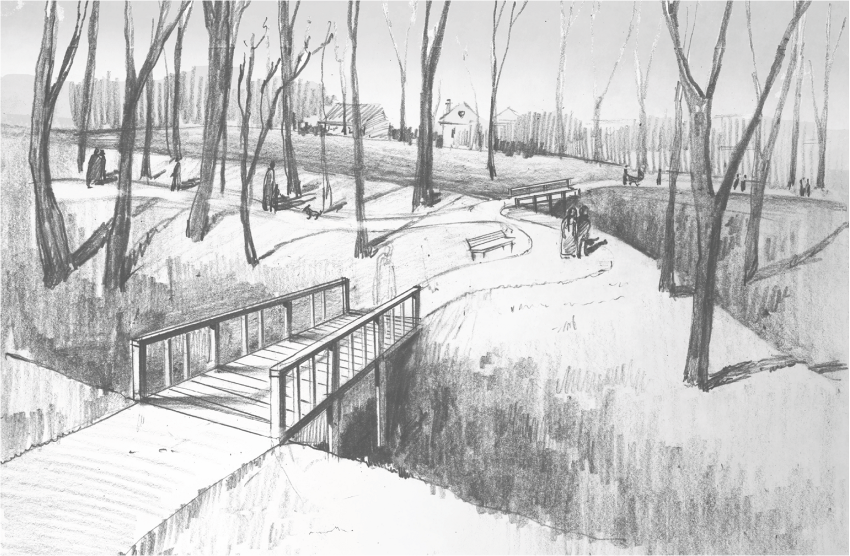 View of the Poserka ravine from Pushkin Avenue. Project of bridges