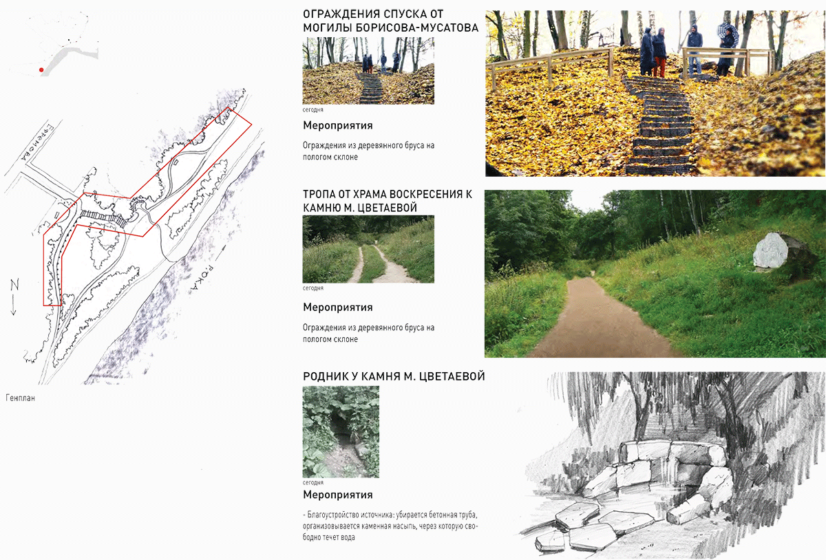 In 2017, MARSH Labs and volunteers built a staircase from Borisov-Musatov's grave to the spring next to the stone; the next step is the arrangement of the spring, path and fences.