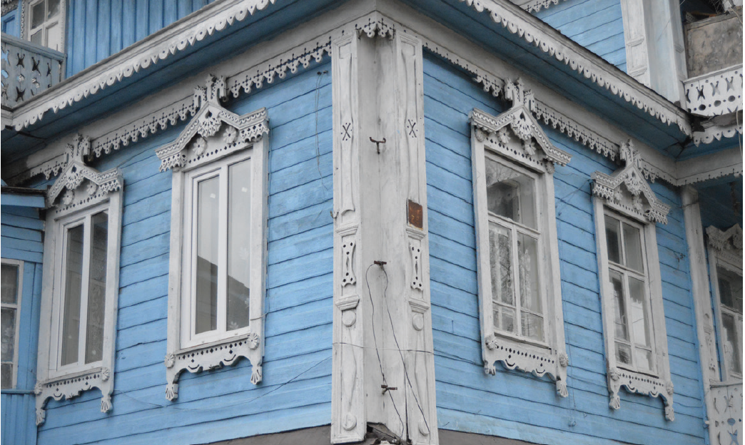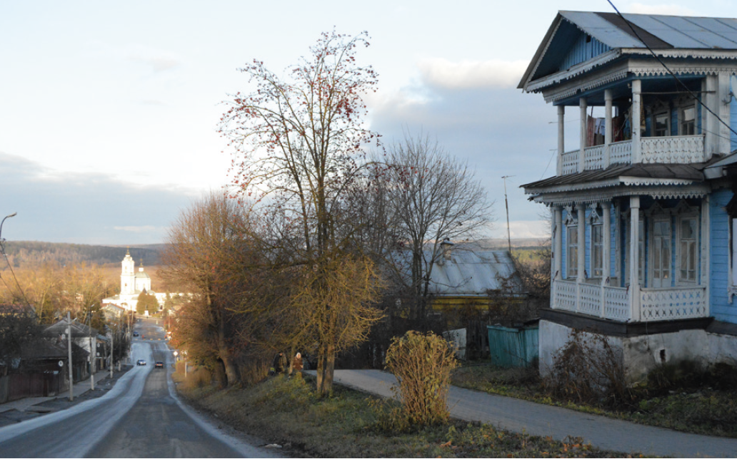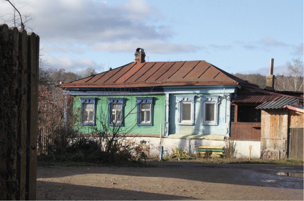 The town of Tarusa has a long tradition of urban development. Fences stood flush with the houses, and front gardens were arranged in front of the houses.