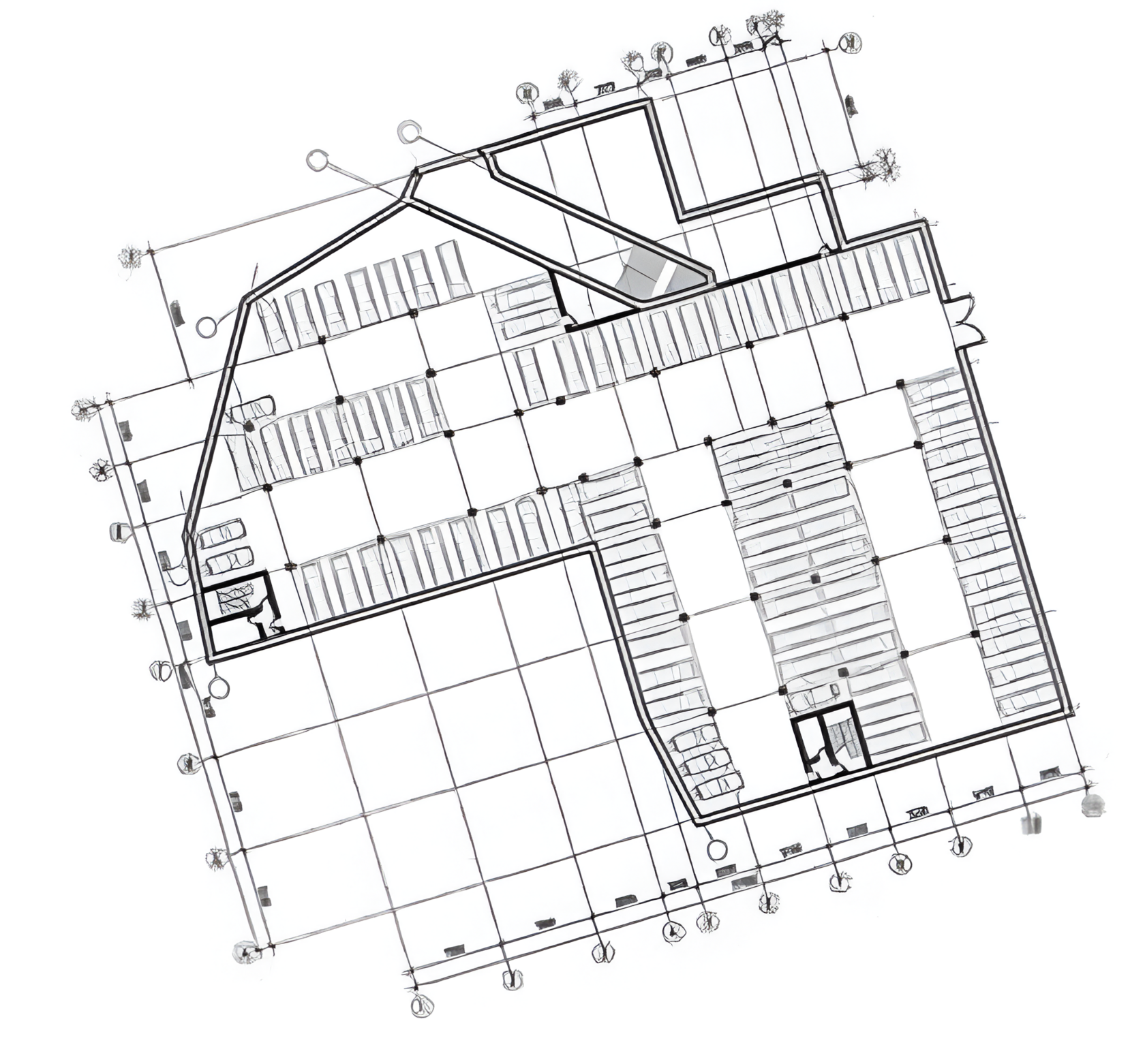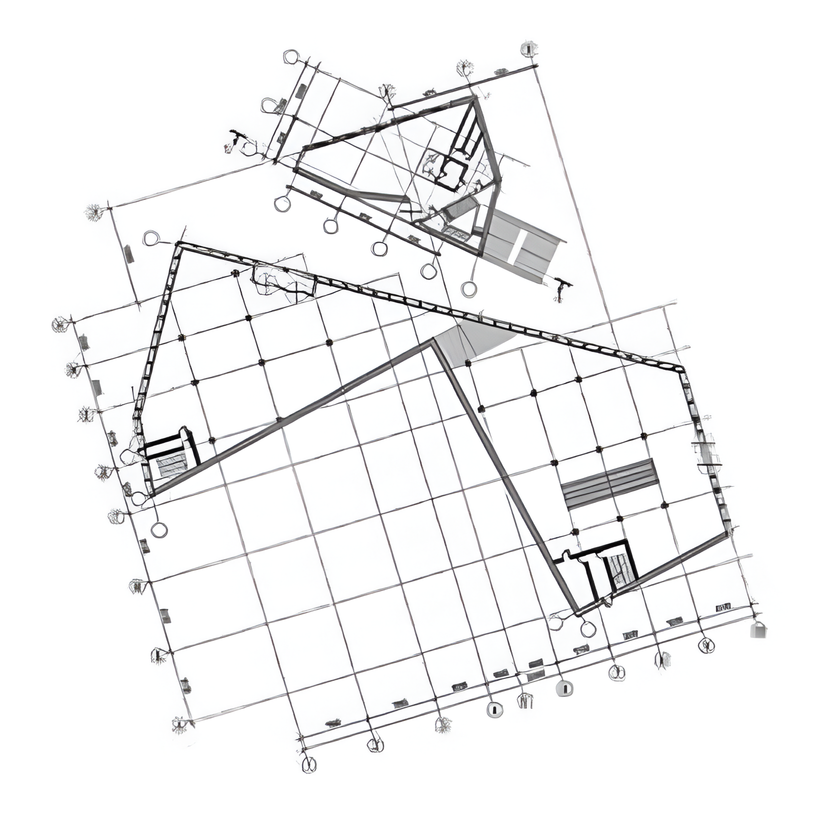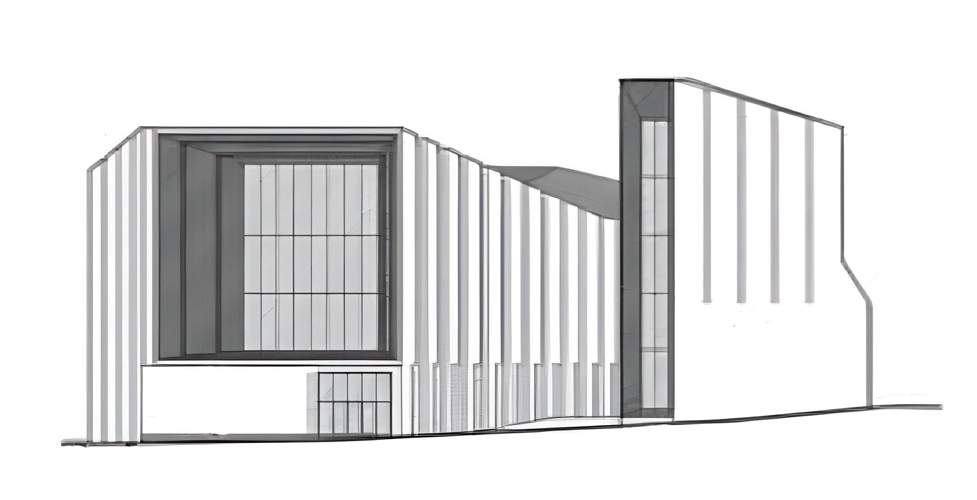 В тоже время вертикальные членения стен, непрерывно переходящие на плоскость кровли, создают эффект обмотанности здания и напоминают мотки шерсти.